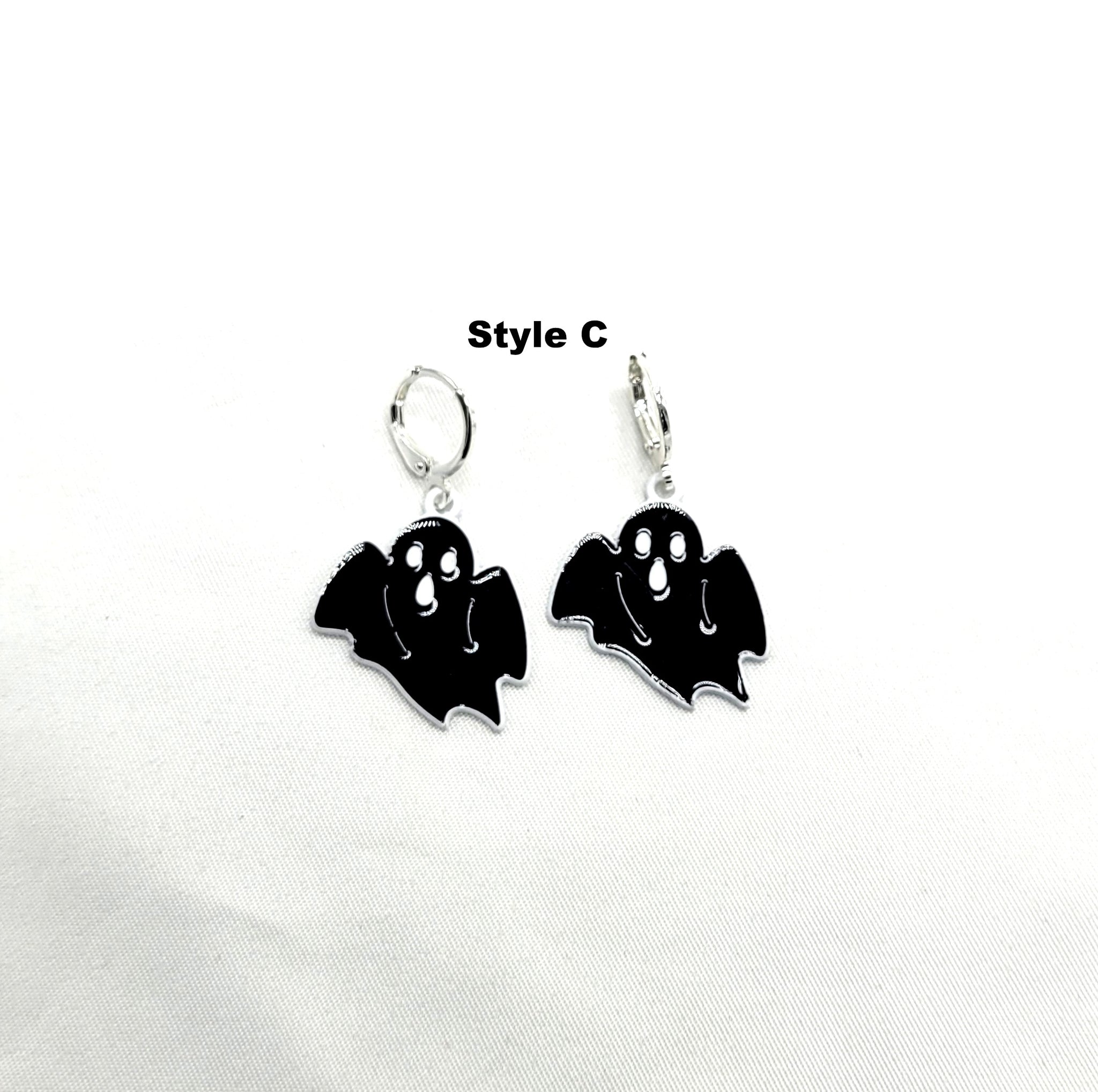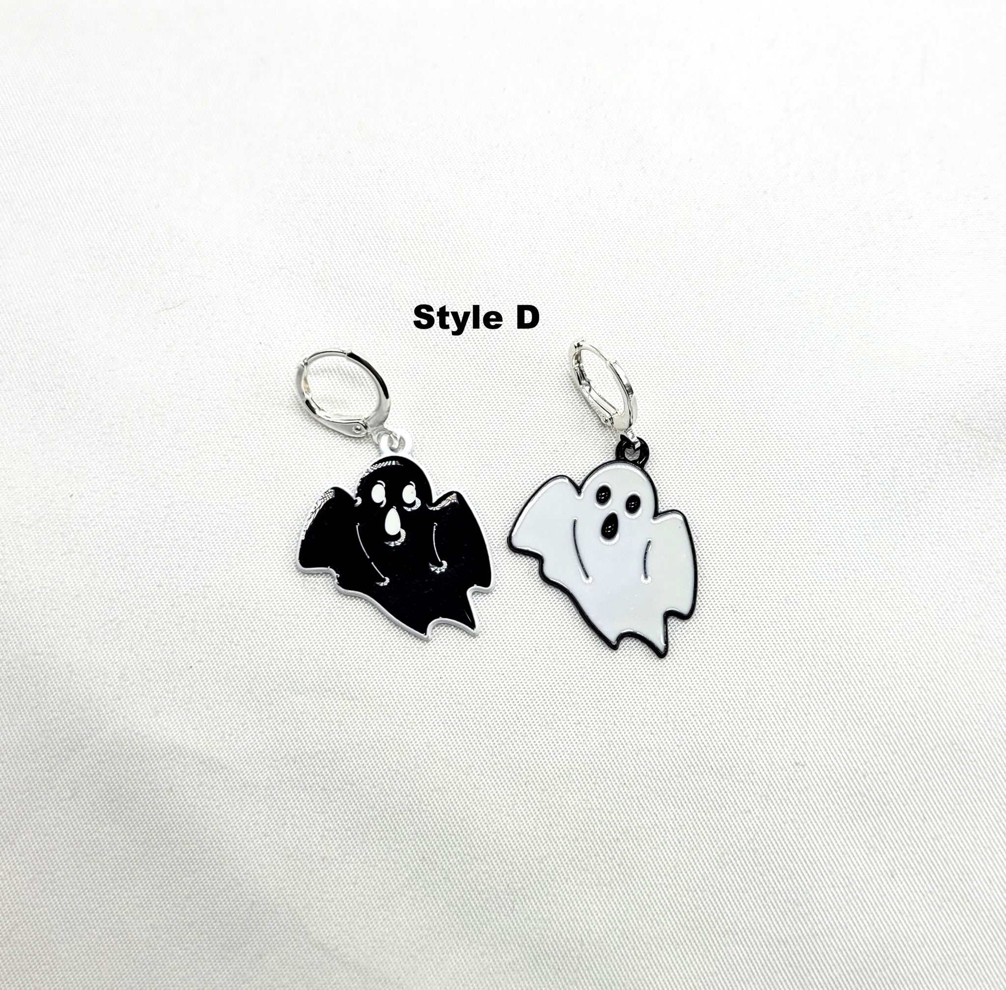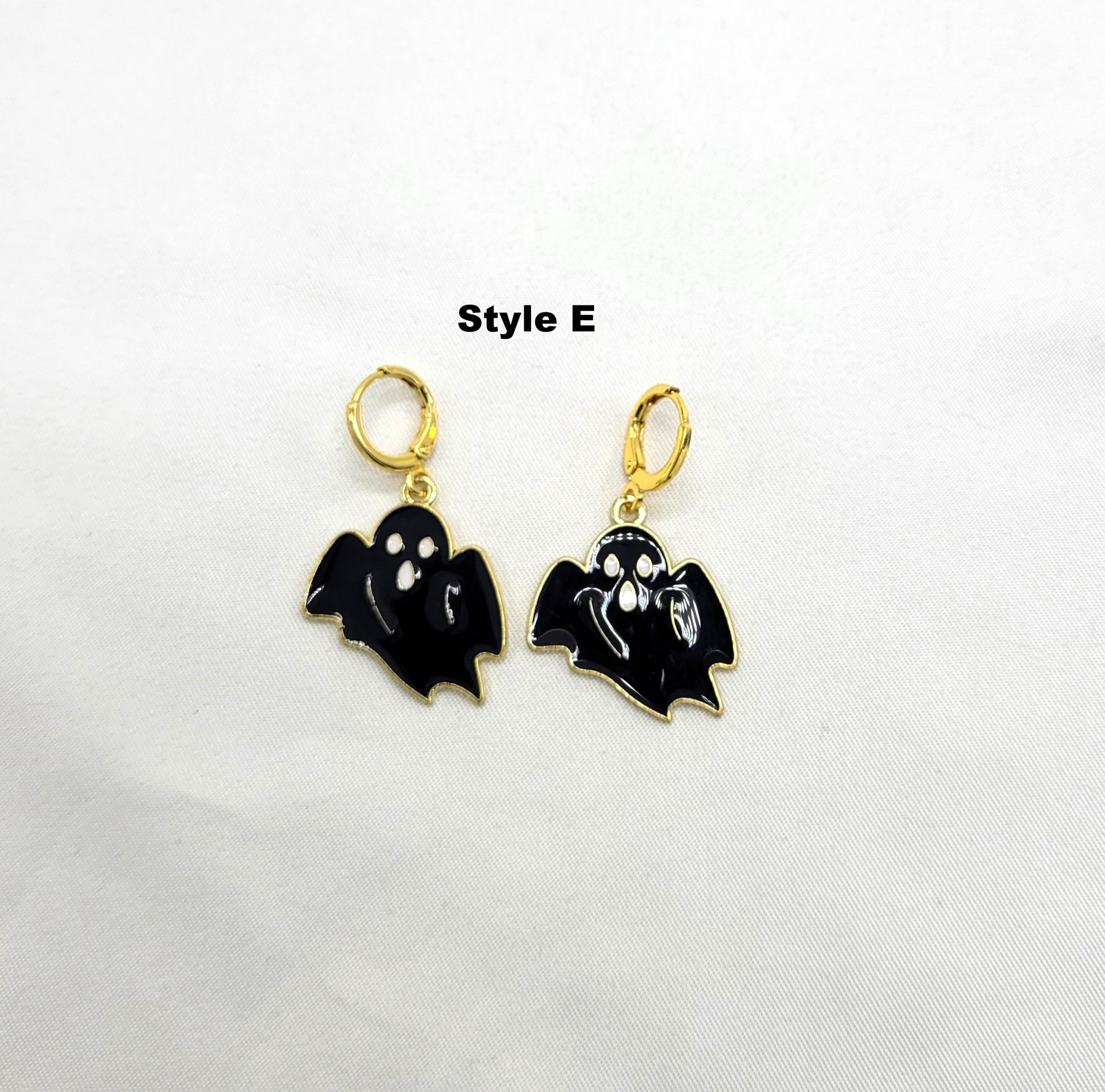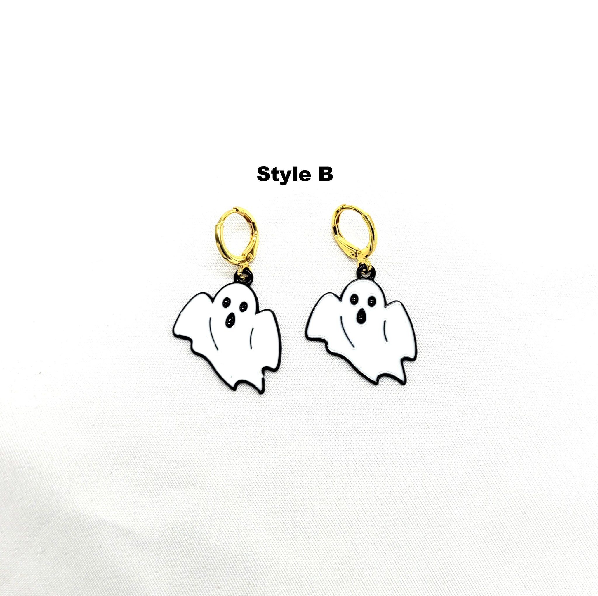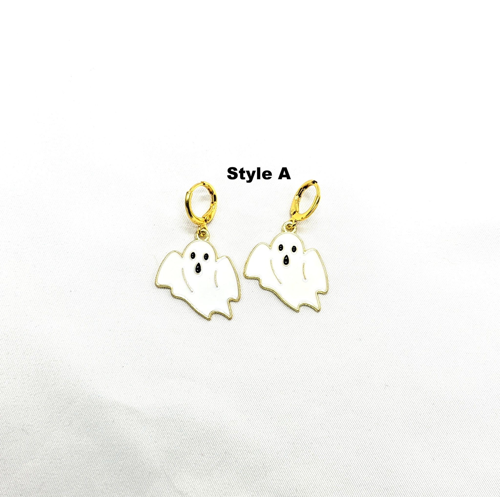 enameled ghost charms on your choice for color ghost and huggie color, round huggies hooks are