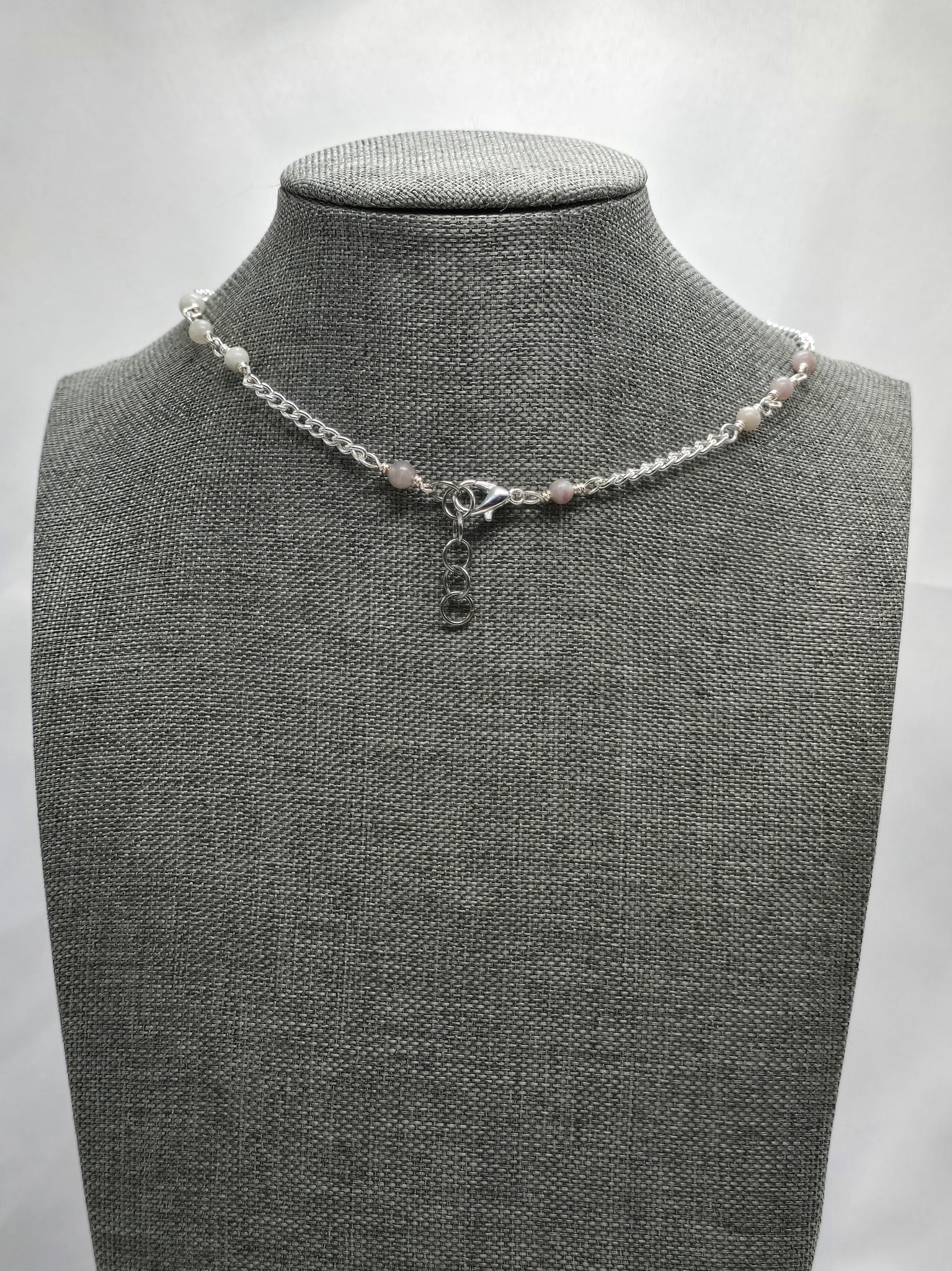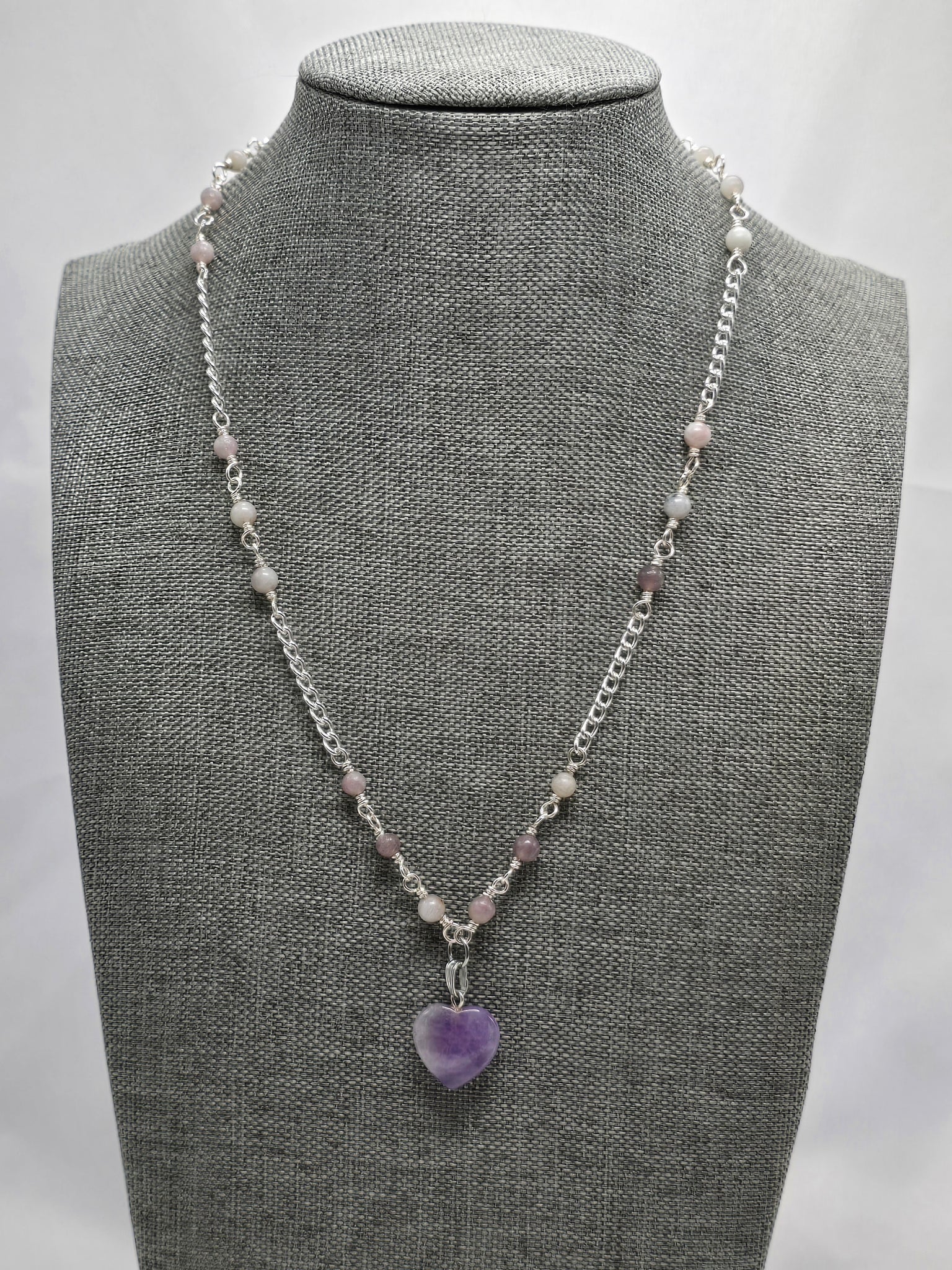 all natural stone pendant heart on silver plated steel curb chain, silver plated lobster claw clasp and adjustable links to 18"