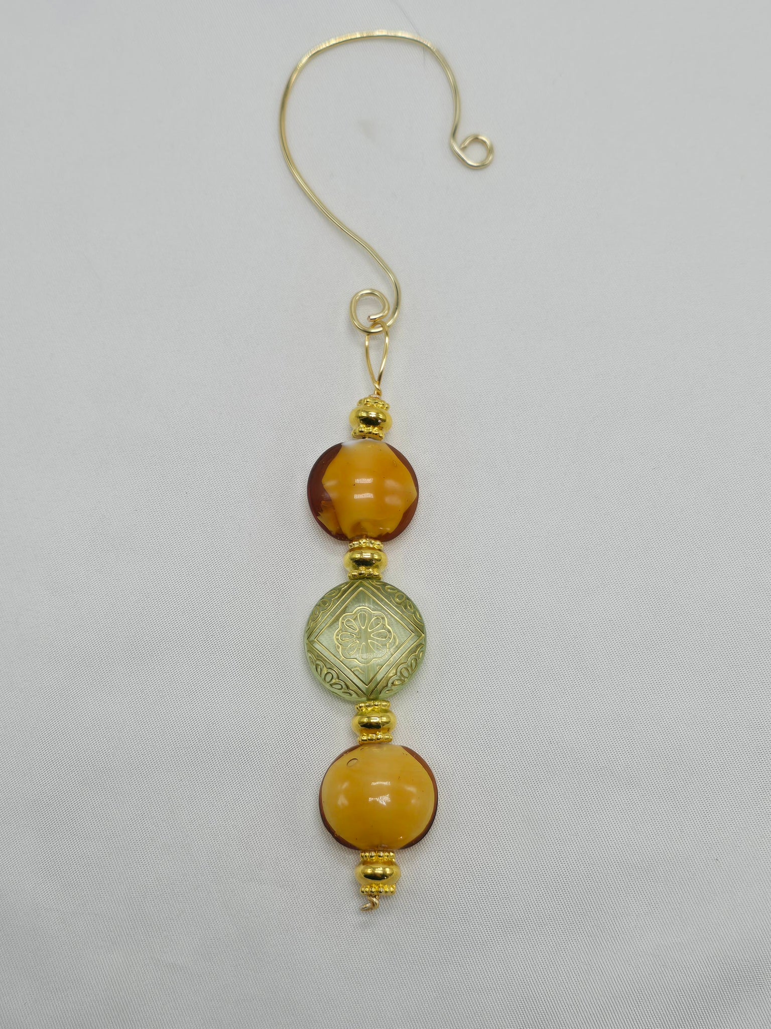 Beaded Ornament, one-of-a-kind hand wired ornament with handcrafted decorative hook, glass and metal, overall length 6"