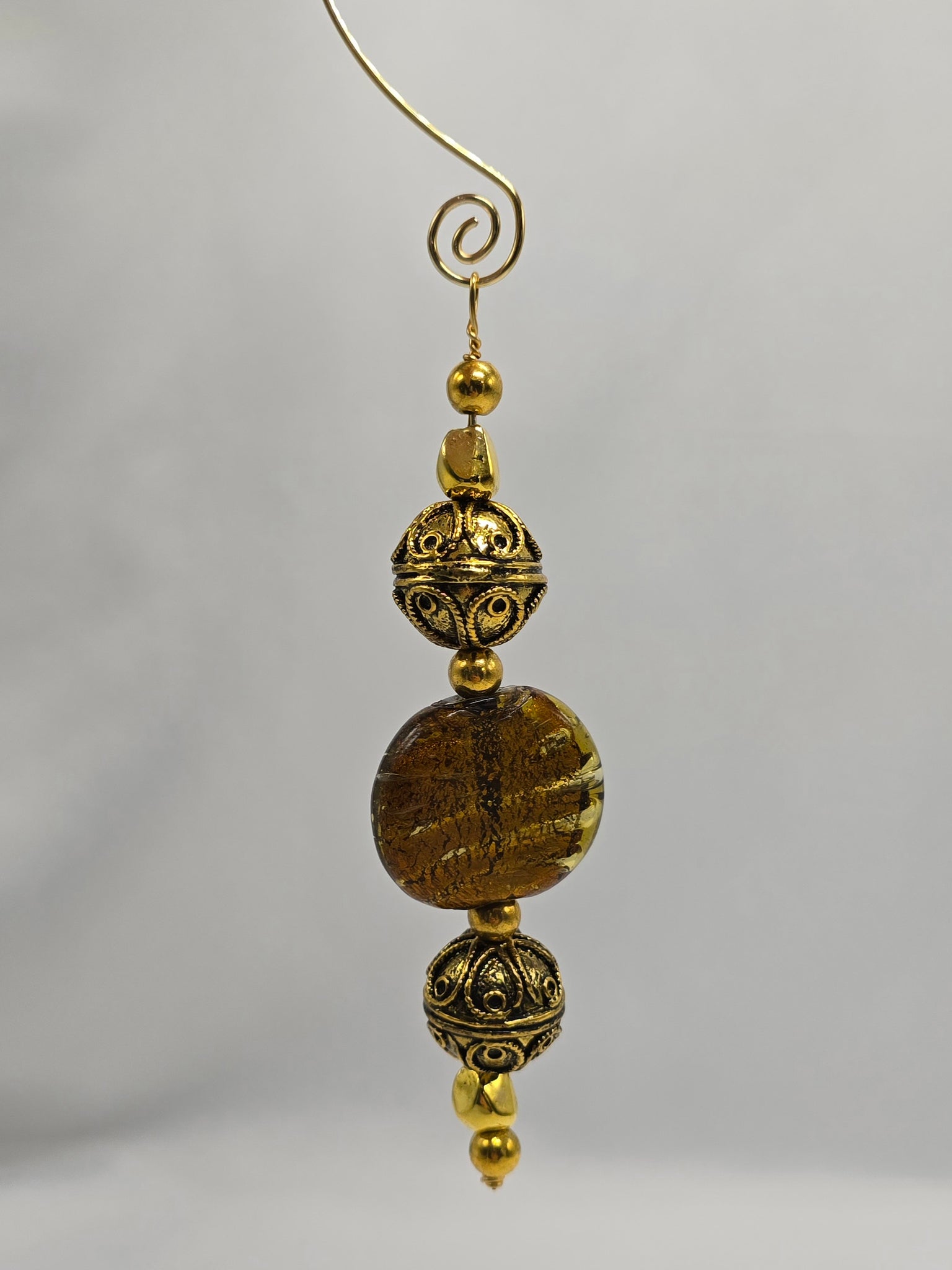 Beaded Ornament, one-of-a-kind hand wired ornament with handcrafted decorative hook, glass and metal, heavy weight, full length 8"