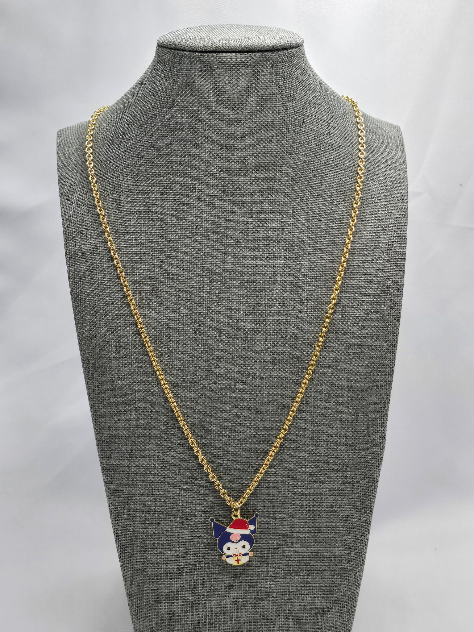 Santa Kuromi Enamel Necklace, 1" single sided enameled charm, metal alloy, lead free, nickel free, cadmium free on 3mm gold finished brass cable chain, gold plated brass lobster claw clasp, adjustable links to 23"